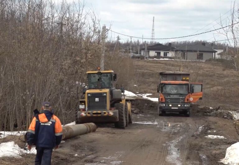Как только поток воды немного спал, городские коммунальные службы начали работы по восстановлению насыпной дороги, поврежденной разливом пруда в селе Панфилово.