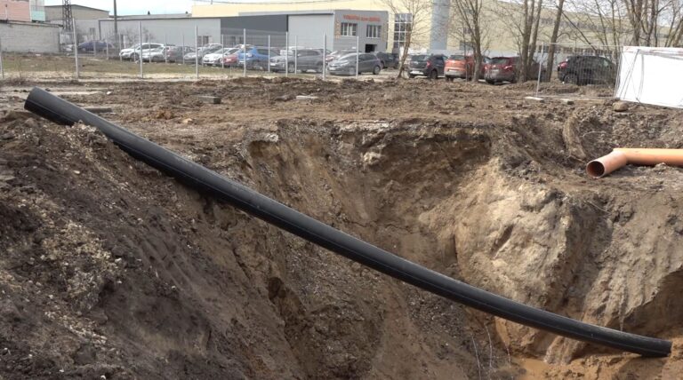 Материал, по которому пойдут канализационные стоки, уходит под землю сантиметр за сантиметром. Подземная коммунальная операция под условным названием «Труба» — не просто очень дорогостоящая, она под силу только высококлассным специалистам.