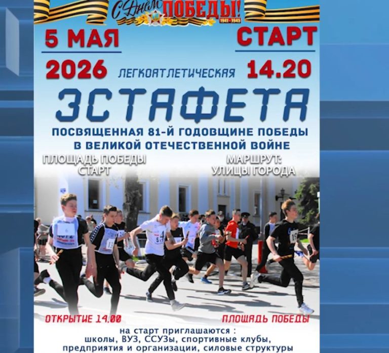 5-го мая в Муроме проведут легкоатлетическую эстафету, посвященную 81-й годовщине Победы в Великой Отечественной войне. Старт и финиш традиционно — на площади Победы. Участие в эстафете примут сборные команды общеобразовательных школ, высших и средне-специальных учебных заведений, спортивных клубов, предприятий и учреждений, силовых структур. Маршрут эстафеты пройдет по улицам: Льва Толстого, Советской, Артема, Октябрьской. Официальное открытие — в 14 часов.